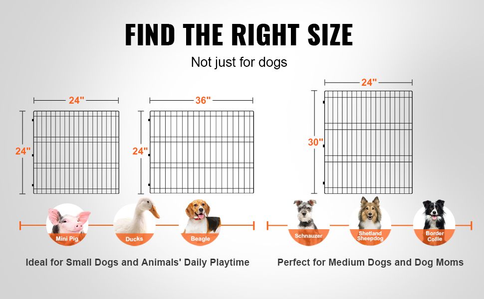 2.Ideal for Various Pets: The 30" high dog pen is perfect for accompanying medium-sized dogs from puppy to adulthood. It is suitable for breeds such as Border Collies, Schnauzers, Shelties, as well as cats, rabbits, ducks, and guinea pigs.