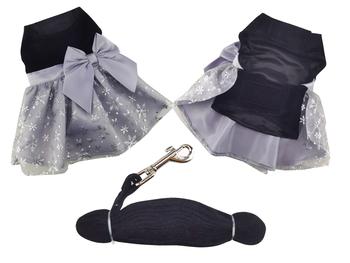 If you're looking for sophistication, this dress is the one for your pup! This beautiful dress features a black velvet bodice with a gray skirt overlaid with shimmery snowflakes. An oversized gray bow at the waist completes the look.